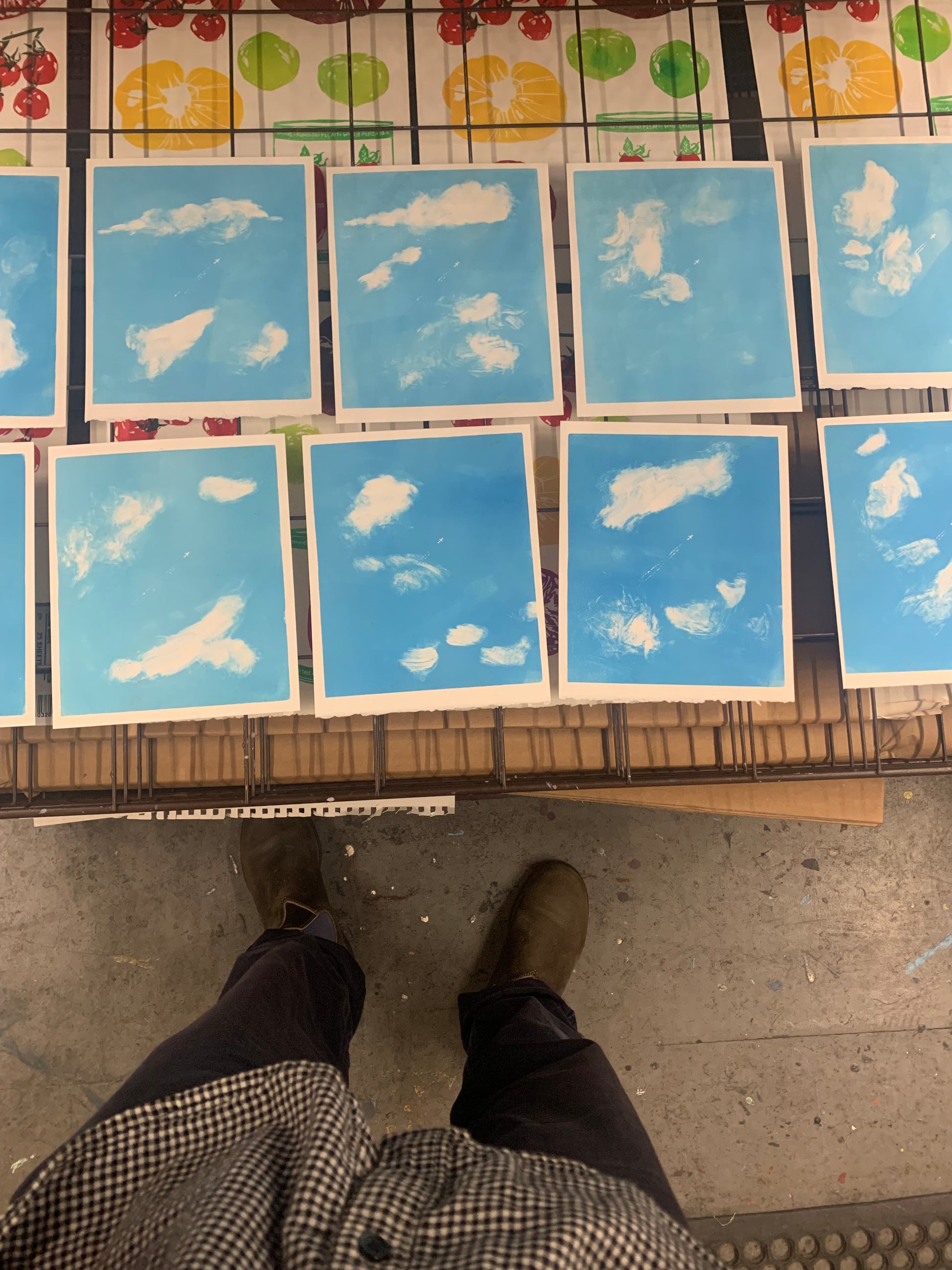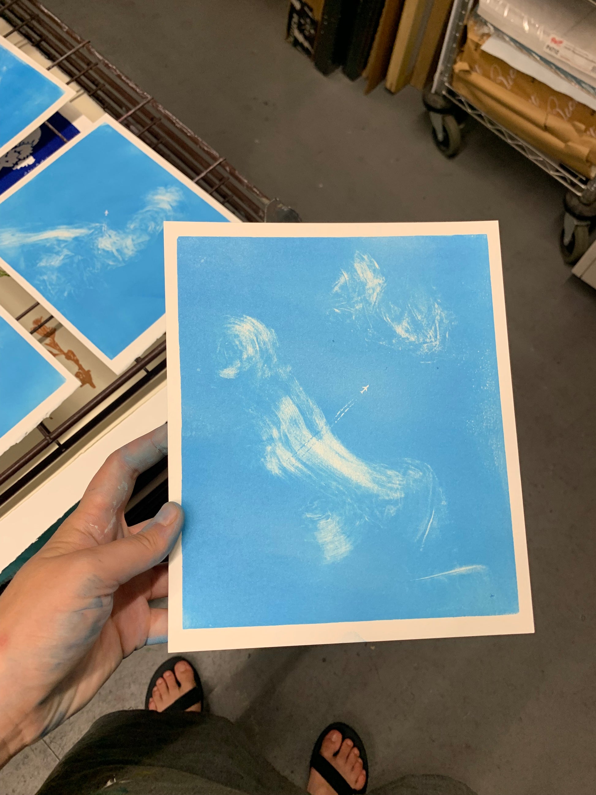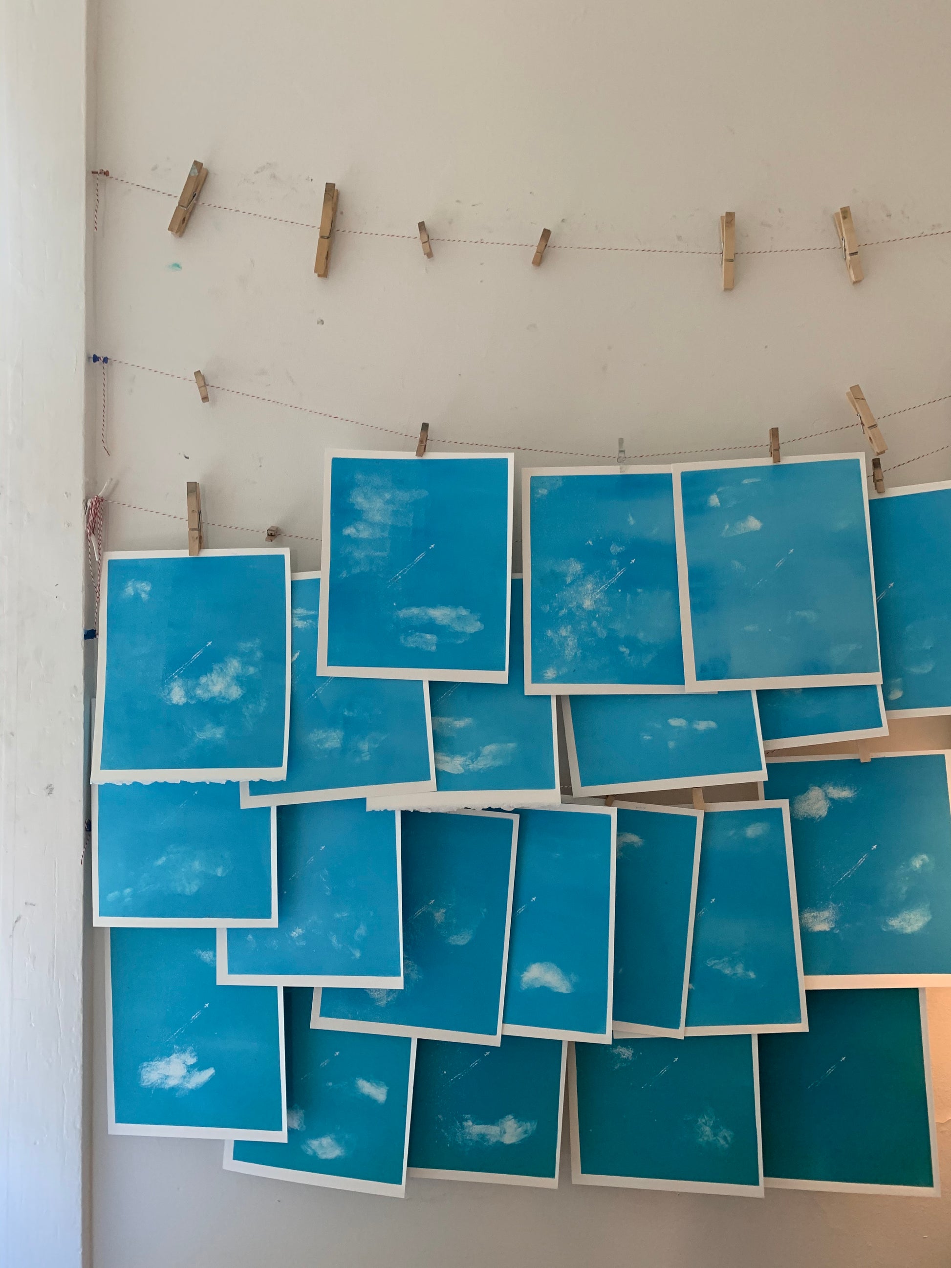 Please note that the clouds are different in every print due to the monoprinting process. – In other words, all of the prints are different. So, please note that the print you order does not look exactly like these images!! (But similar) :))))))