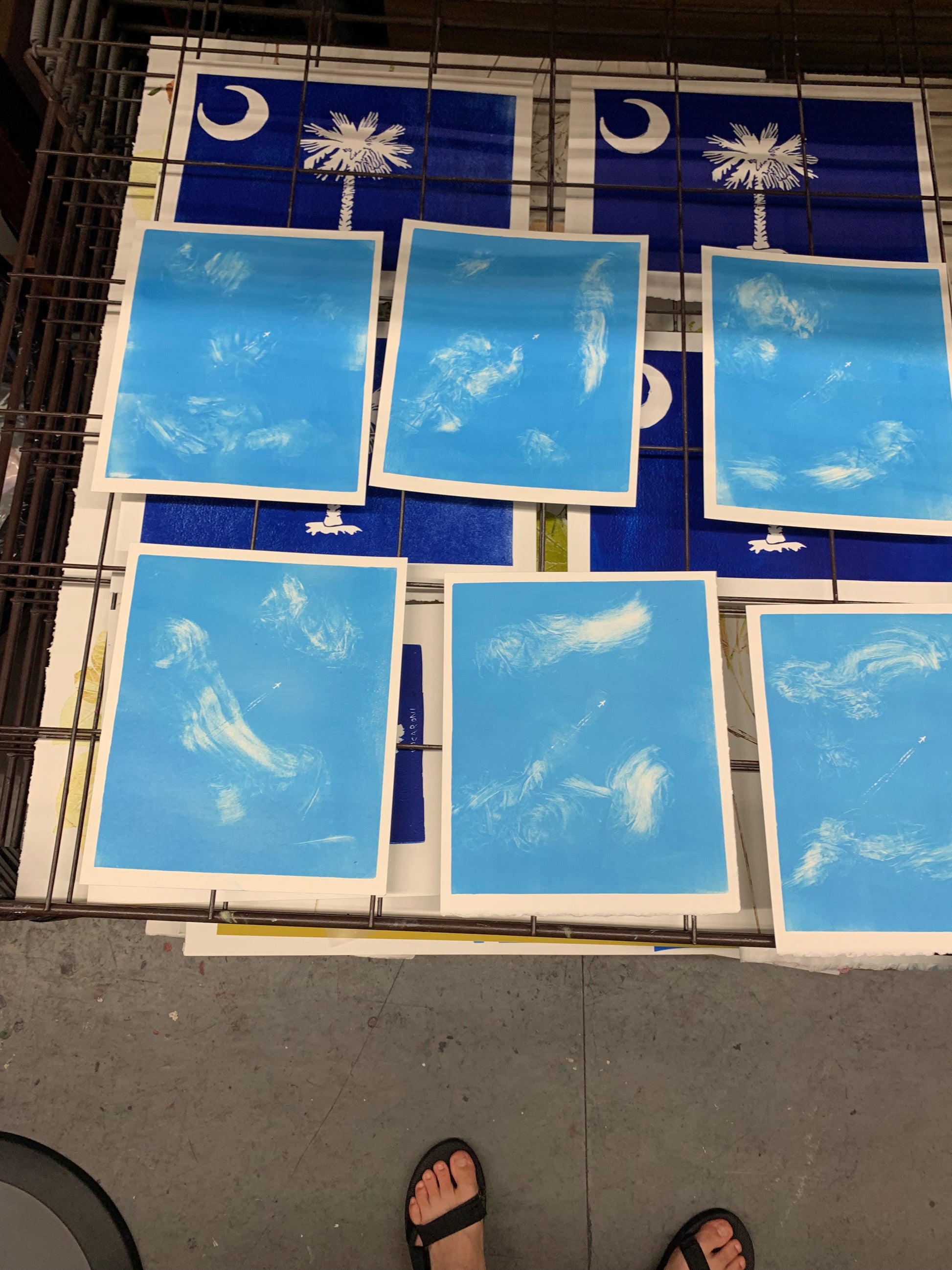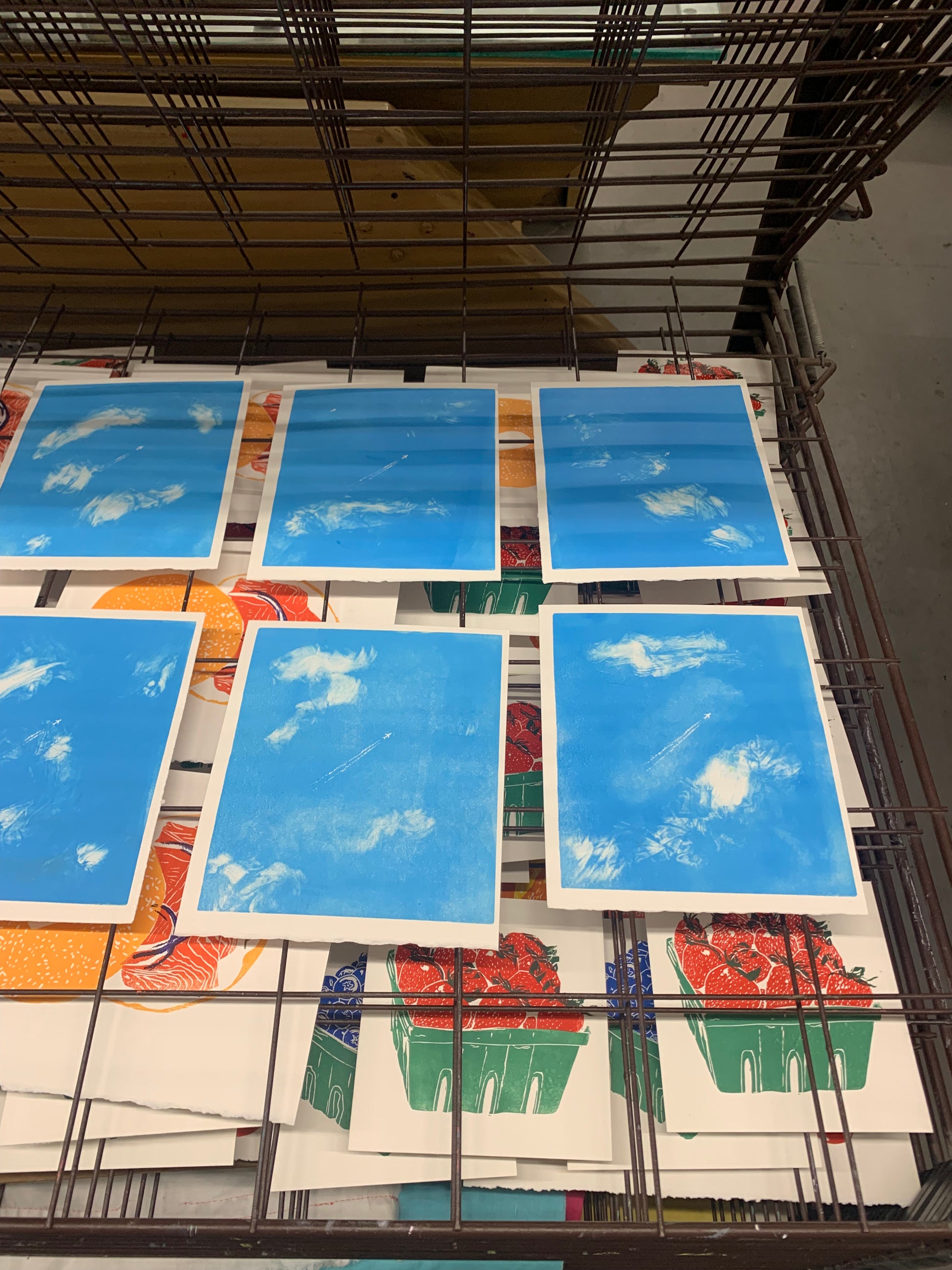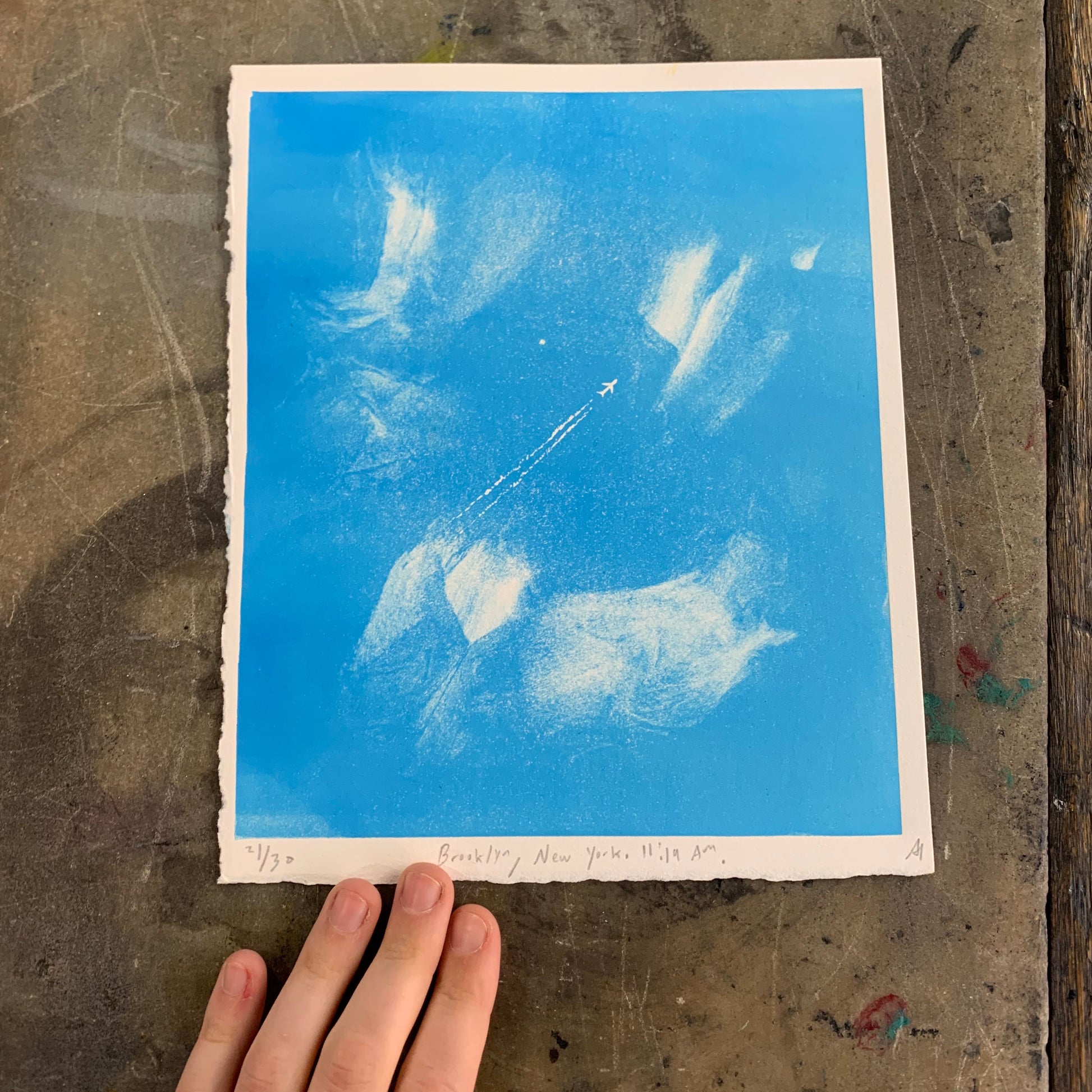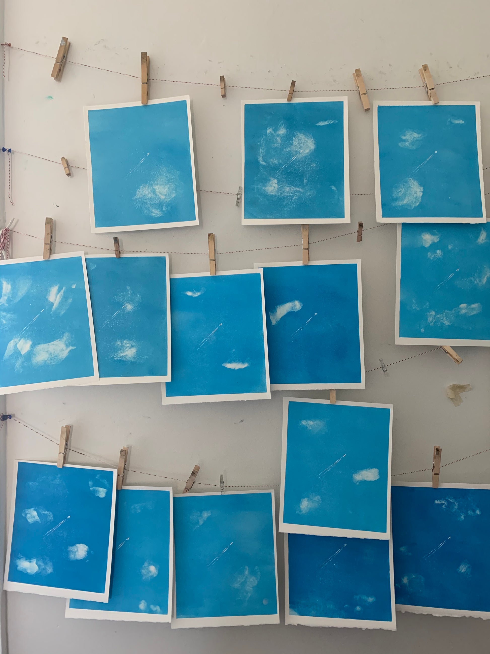Please note that the clouds are different in every print due to the monoprinting process. – In other words, all of the prints are different. So, please note that the print you order does not look exactly like these images!! (But similar) :))))))