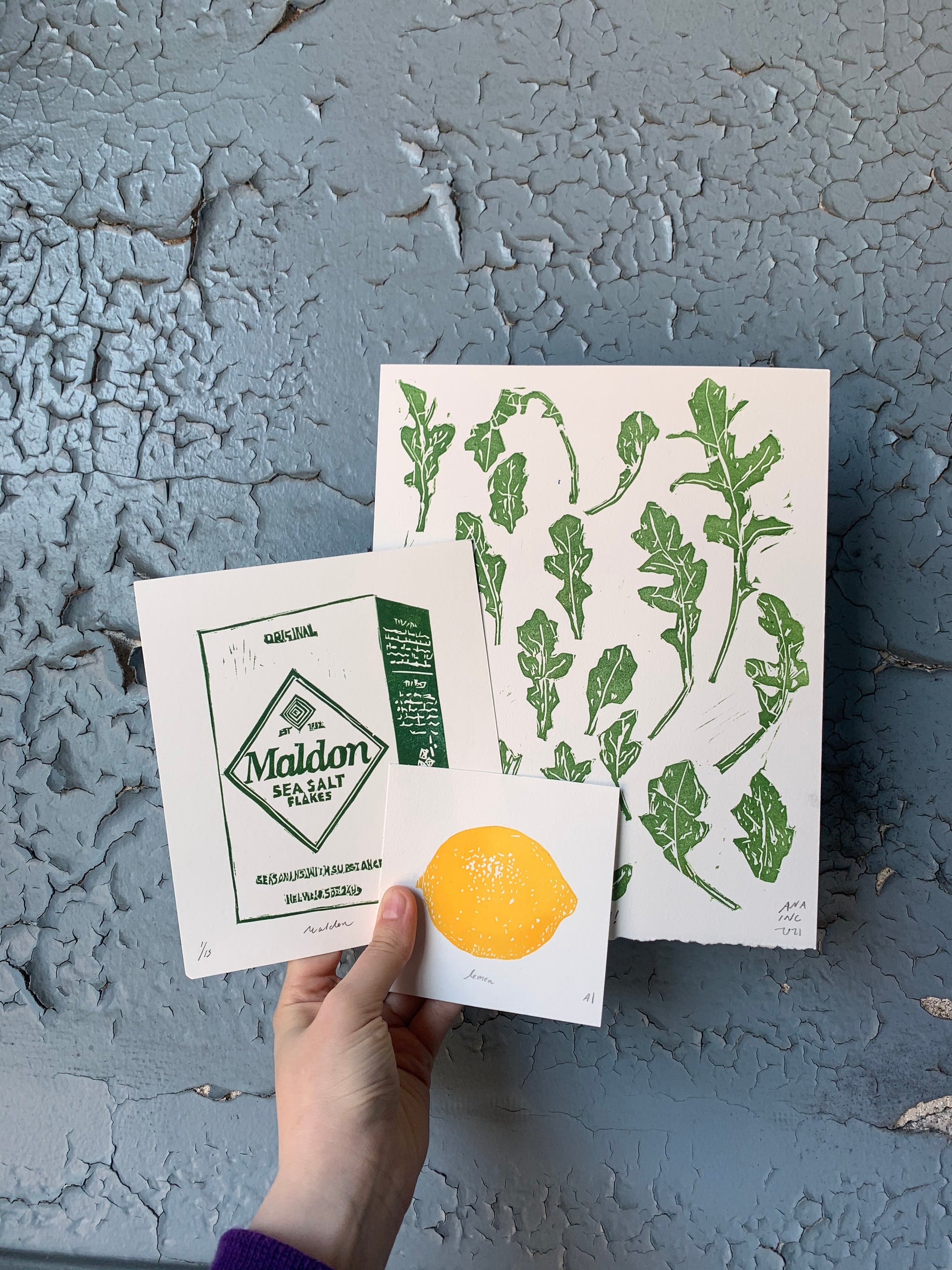 Hand-carved and printed linocut of a lemon.