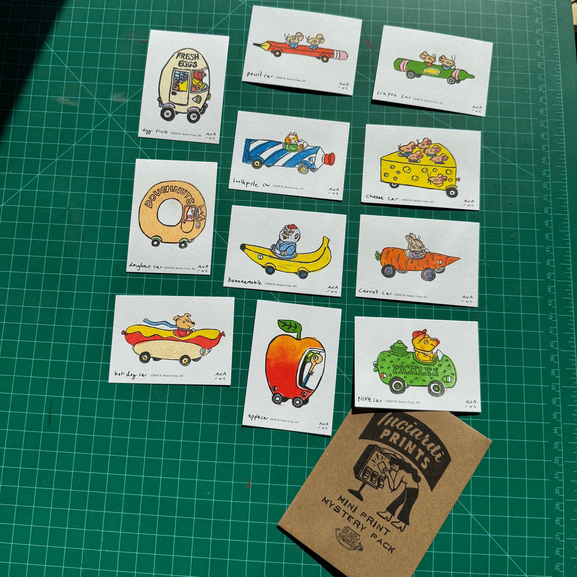 Mini print mystery pack featuring art from Ana's collaboration collection with Richard Scarry!